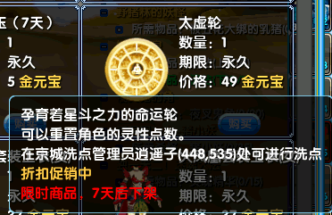这次口袋更新了重置角色灵性的道具 如图 限时7天