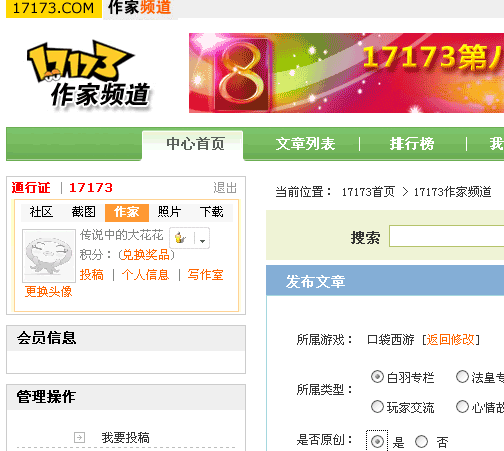 5.出现上图所示页面,说明注册17173通行证已经成功。